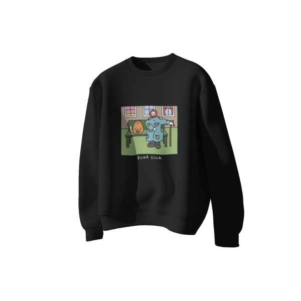 Inspirat de străzile și cartierele Chișinăului, acest sweatshirt aduce un omagiu gesturilor simple care apropie oamenii – un zâmbet, un „bună ziua” spus pe aleea dintre blocuri sau în parc.